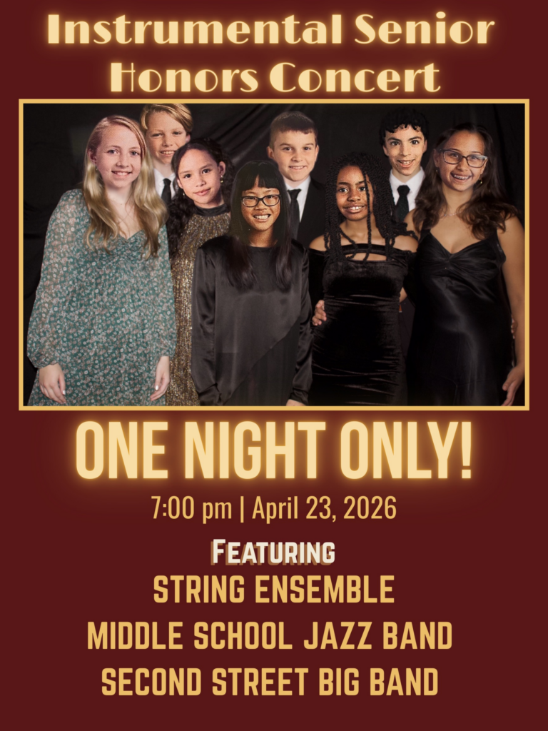 The 2nd Street Campus Music Department presents the annual Instrumental Senior Honors Concert on Thursday, April 23 at 7:00 pm! Join our soon-to-be graduates and other student musicians to celebrate their tenure in the music department.