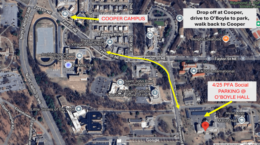Parking available in the Catholic University O’Boyle lot. Check out the map for details.